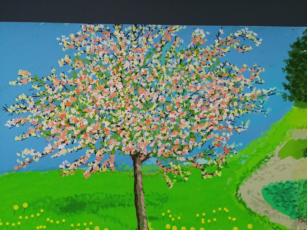 Quelques mois plus tôt, au musée de bayeux, hockney avait été fortement marqué par la tapisserie de la reine mathilde. .. Germe alors le projet de dépeindre sous la forme d'un cycle narratif l'arrivée du printemps.
